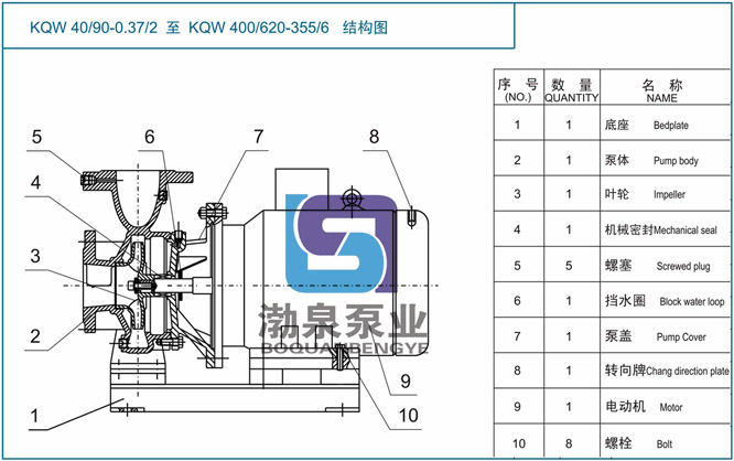 产品介绍 用途 KQW40/90-0.37/2卧式单级离心泵用于空调、采暖、卫生用水、水处理冷却冷冻系统、液体循环和供水、增压及灌溉等领域中无腐蚀的冷水和热水输送。
